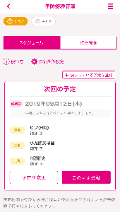 複雑な予防接種のスケジュール管理が簡単にできます。お子さんの出生日と予防接種履歴を登録することで、次に接種できるワクチンと最適な接種期間を自動で算出し、予定日が近づくと事前にお知らせします。