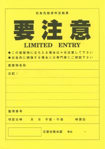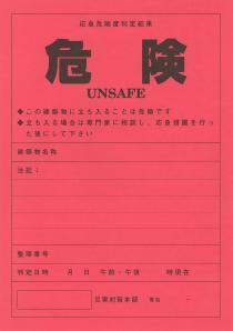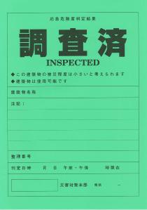 判定結果は、建物の見やすい場所に表示され、居住者はもとより付近を通行する歩行者などに対してもその建築物の危険性を伝えるものとなります。